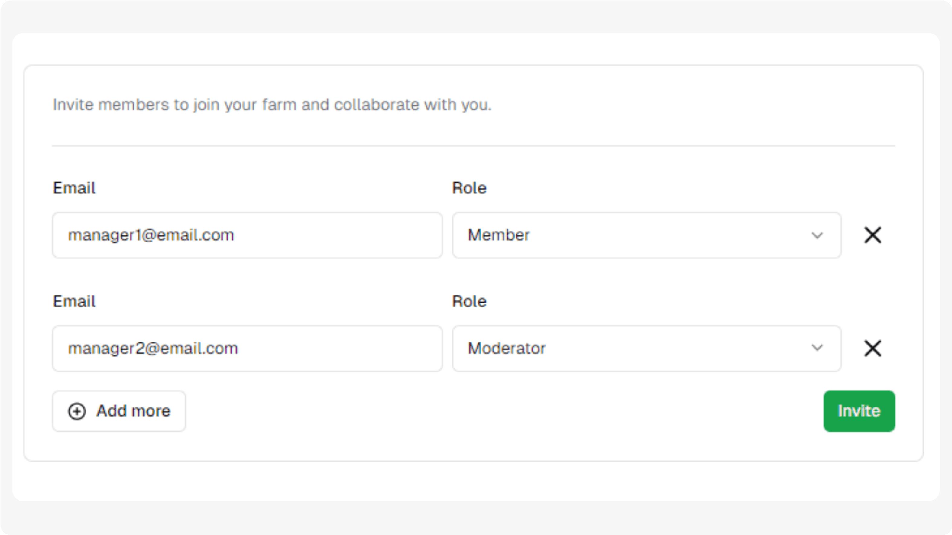 - Designate rolesStreamline workflows by adding colleagues to a farm.