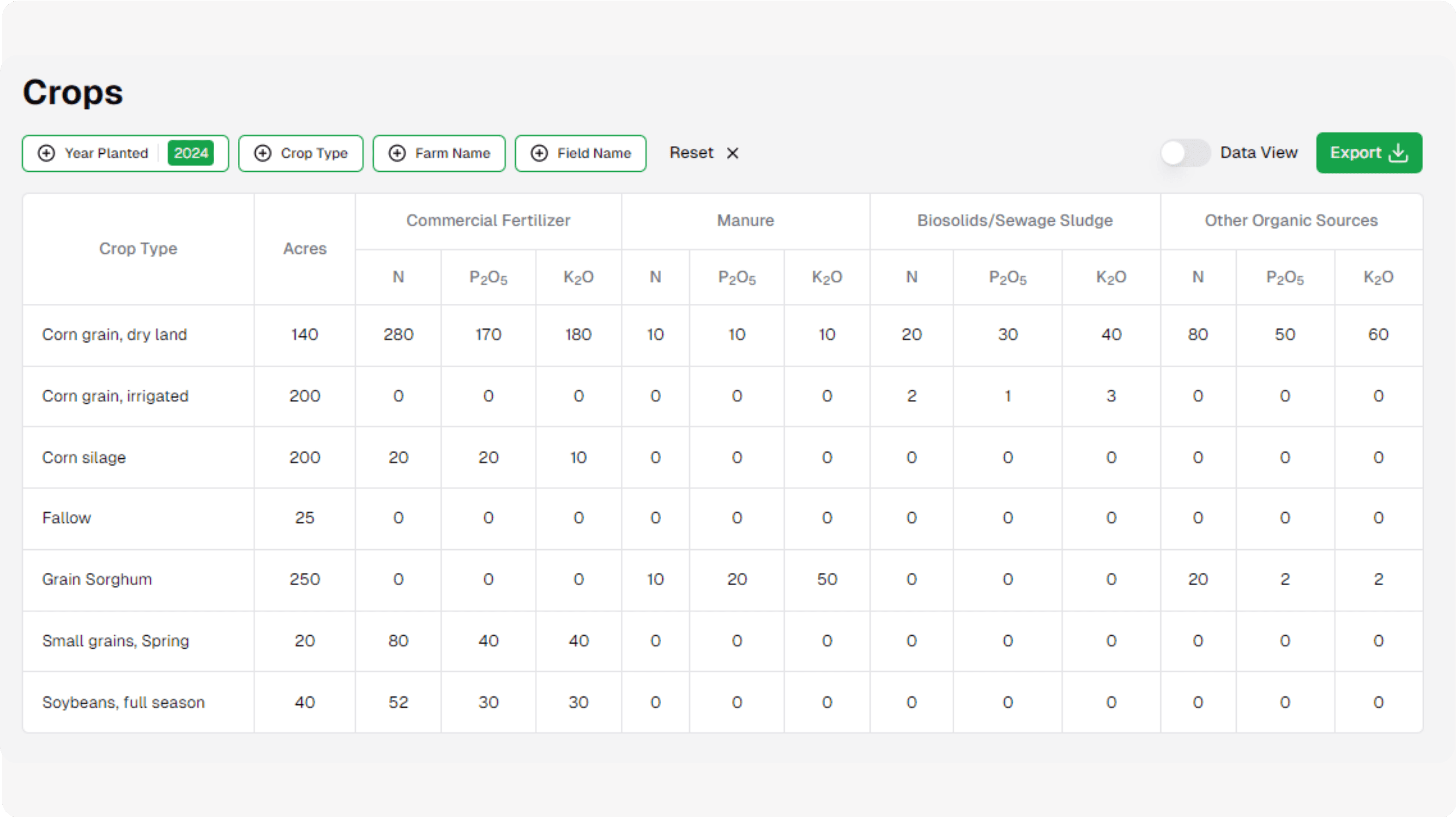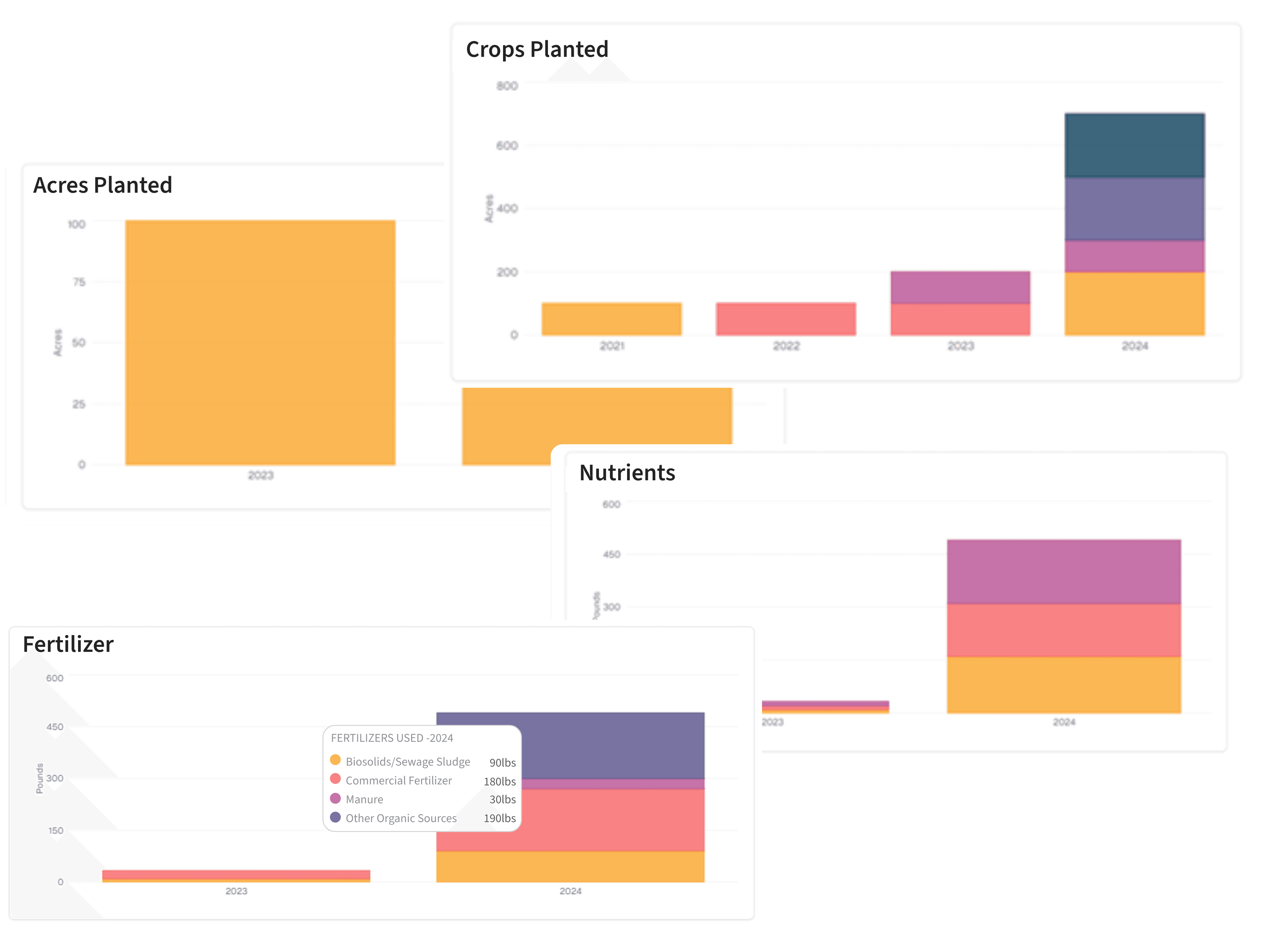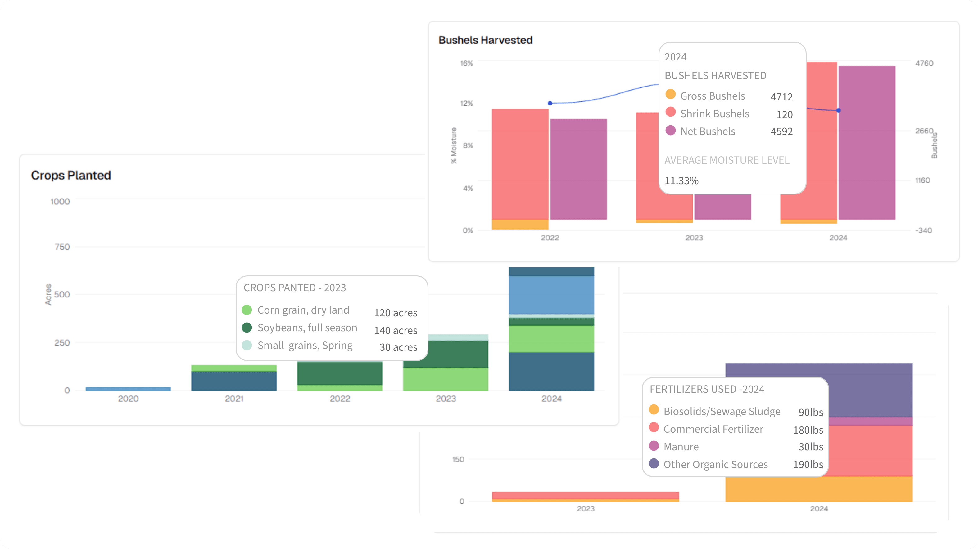Track inputs and outputs across your operation and drill-down on crops, nutrients, and harvests.